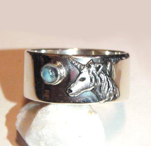 Dieses silberne Amulett mit kleinen Mondsteincabochons und einem drehbaren Ring war eine Sonderanfertigung.