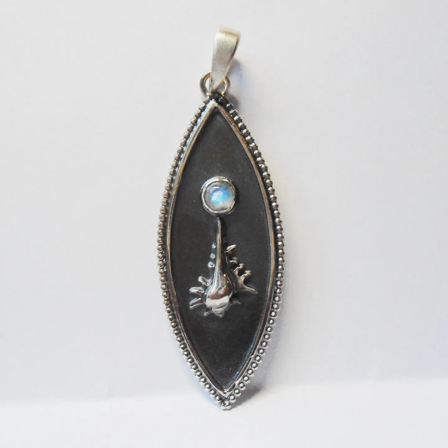 Handgearbeiteter Anhänger aus 925er Silber mit Mondstein.