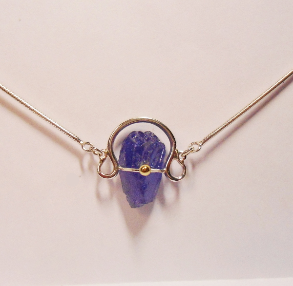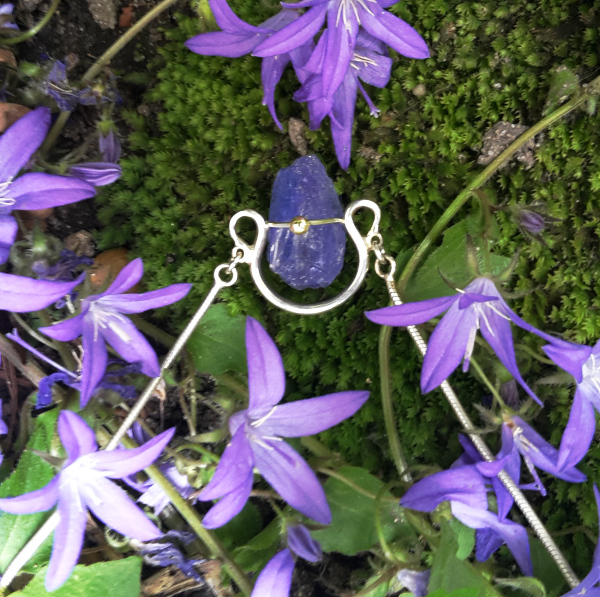 Collier aus 925 Silber mit einem Tansanit und 750er Goldkügelchen.