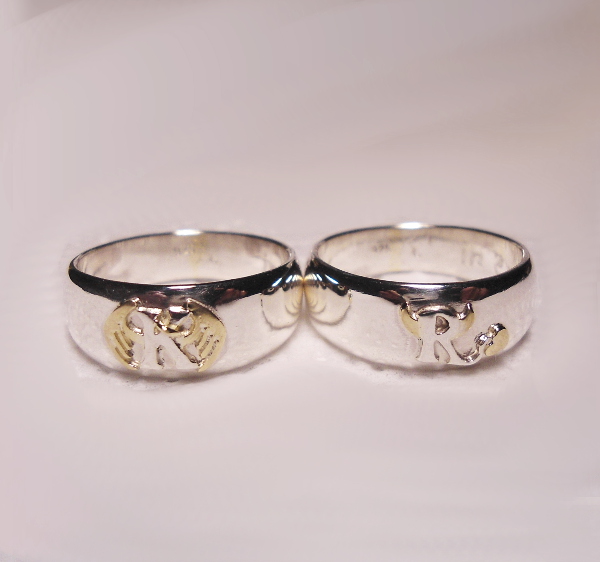 Handgearbeitete Eheringe aus 925er Silber und 585er Gelbgold mit Engel-Teufelmotiv. Falls Sie sich nicht einigen können, wer nun Teufel und wer Engelchen ist, sind auf Wunsch auch zwei Teufel-bzw Engelringe zu haben.