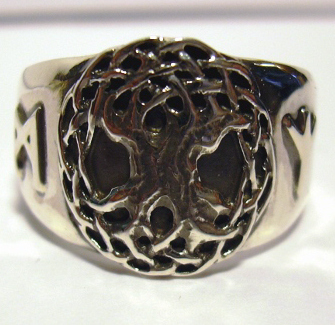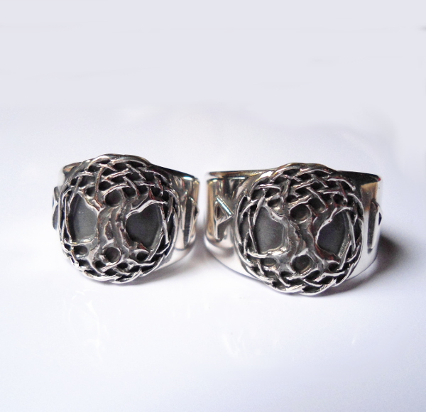 Handgearbeitete Eheringe aus 925er Silber mit keltischem Lebensbaum. Auf Wunsch mit 2 wählbaren Runen/Buchstaben links und rechts vom Lebensbaum .