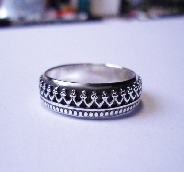 Gewölbte Eheringe aus 925er Sterling-Silber mit kunstvoller Muster-Borte.