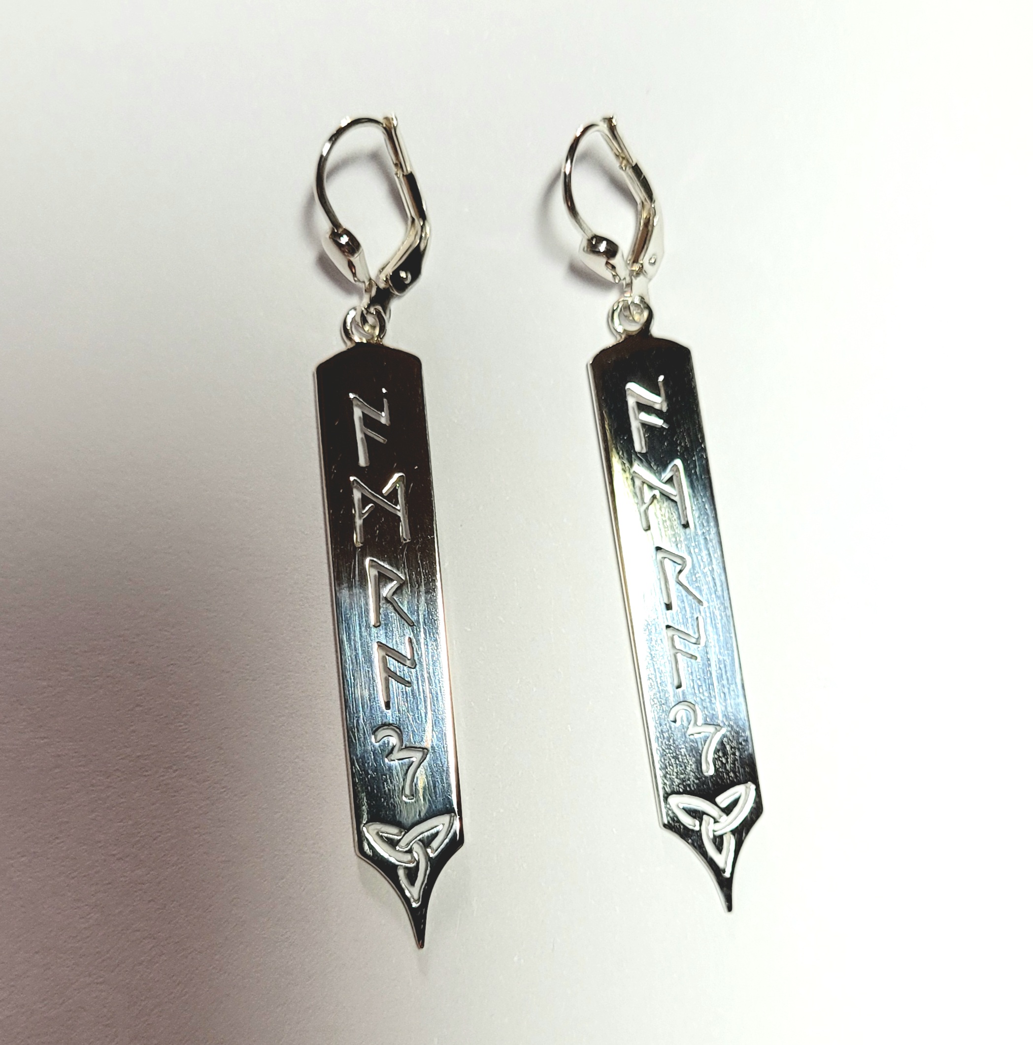 Keltische Ohrhänger in 925er Sterling-Silber mit Ihrem Namen oder sonstigen Worten in Runen/Buchstaben.