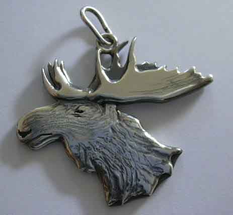 Anhänger aus 925er Sterling-Silber in Form eines Elchkopfs.
