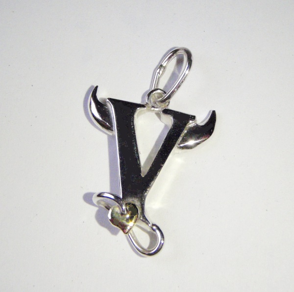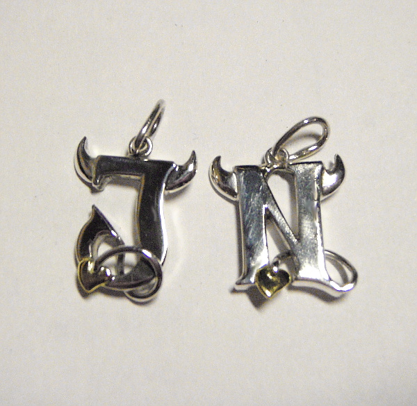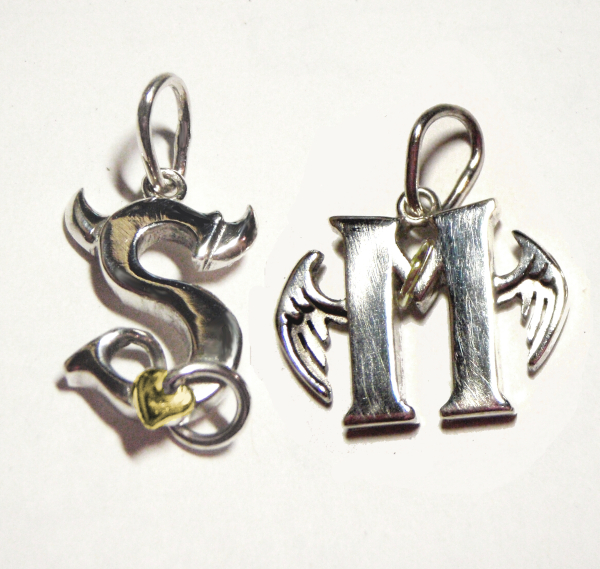 Massive Buchstaben aus 925er Silber (ca. 1,5cm hoch, ca. 2,5mm stark) als Engel und Teufel.