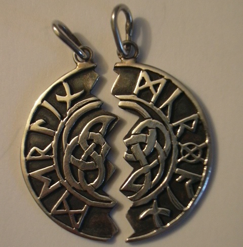 Anhänger aus 925er Sterling-Silber mit keltischem Knoten und den Partnernamen als Runen.