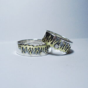 Silber läuft durch Schwefel an, ein Teil wird über die Haut ausgeschieden. Schwefelhaltige Nahrung begünstigt also das Anlaufen. Diese Verfärbungen sind bei polierten Oberflächen mit einem handelsüblichen Silberputztuch sehr gut zu beseitigen. Um die weiße fein-matte Oberfläche wiederherzustellen, pinseln Sie diese mit einem Silbertauchbad ein und lassen es ein wenig einwirken. Den Stein aussparen. Nach dem Abspülen ein wenig mit einem weichen Tuch oder Leder reiben.