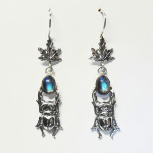 Ohrhänger Blatt mit Eidechsen und Edelstein